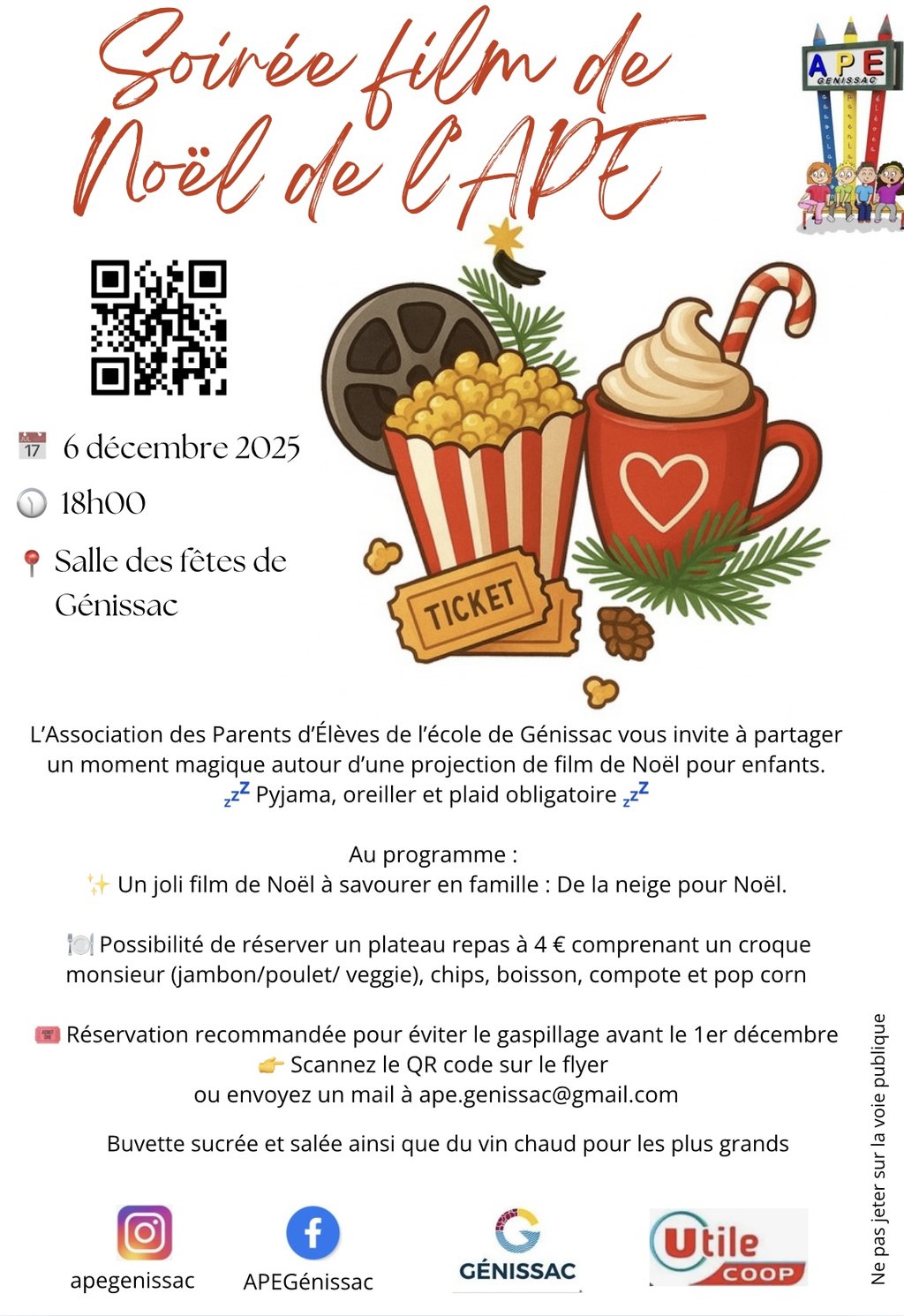 âĄïž Ou par mail : ape.genissac@gmail.com